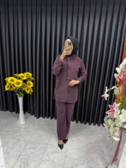 Kuş Gözü Detaylı Yandan Bağlamalı Etekli Takım Kahverengi