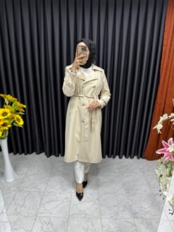 Düğmeli Kemerli Trençkot Bej