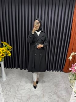 Düğmeli Kemerli Trençkot Siyah