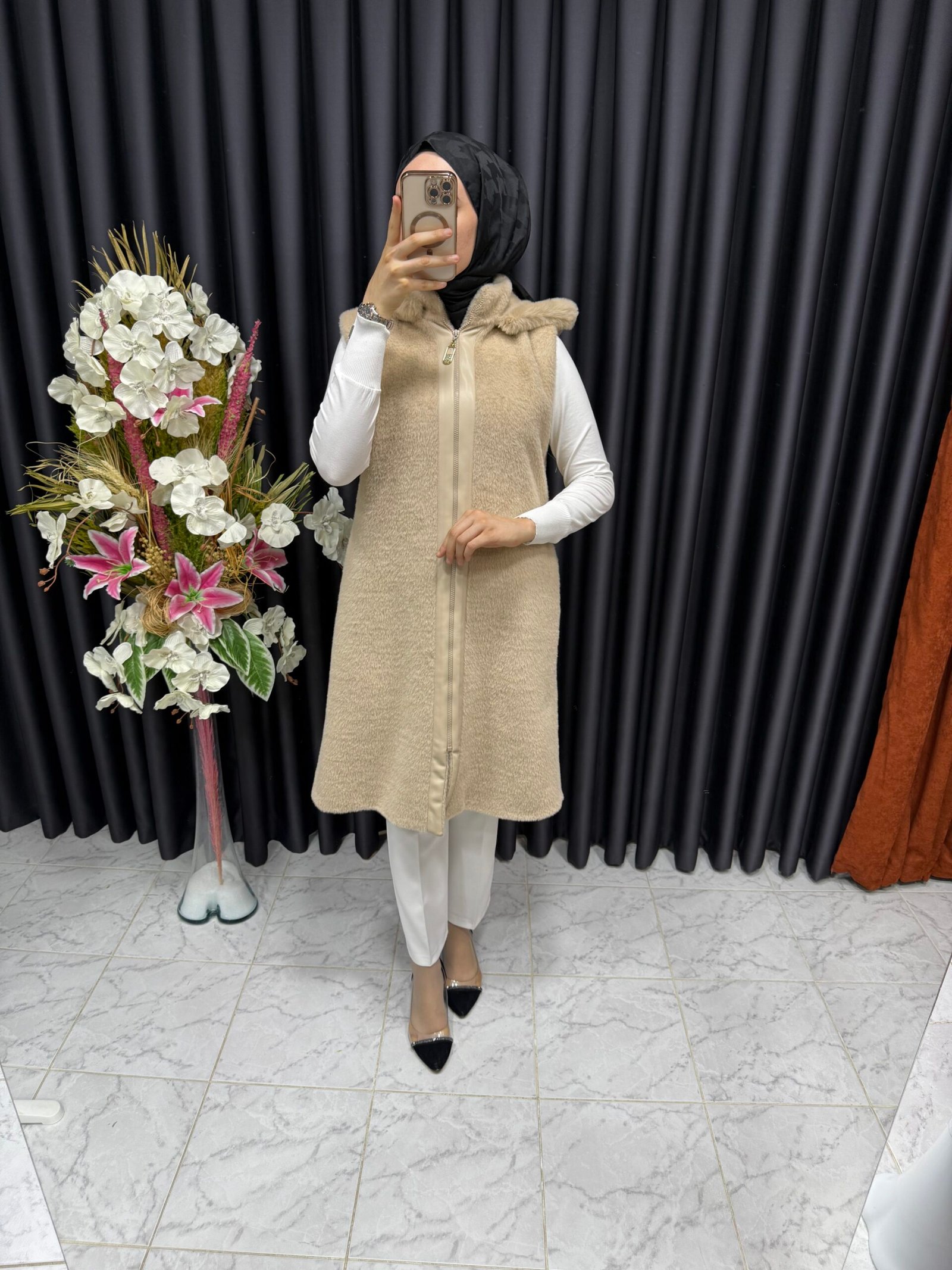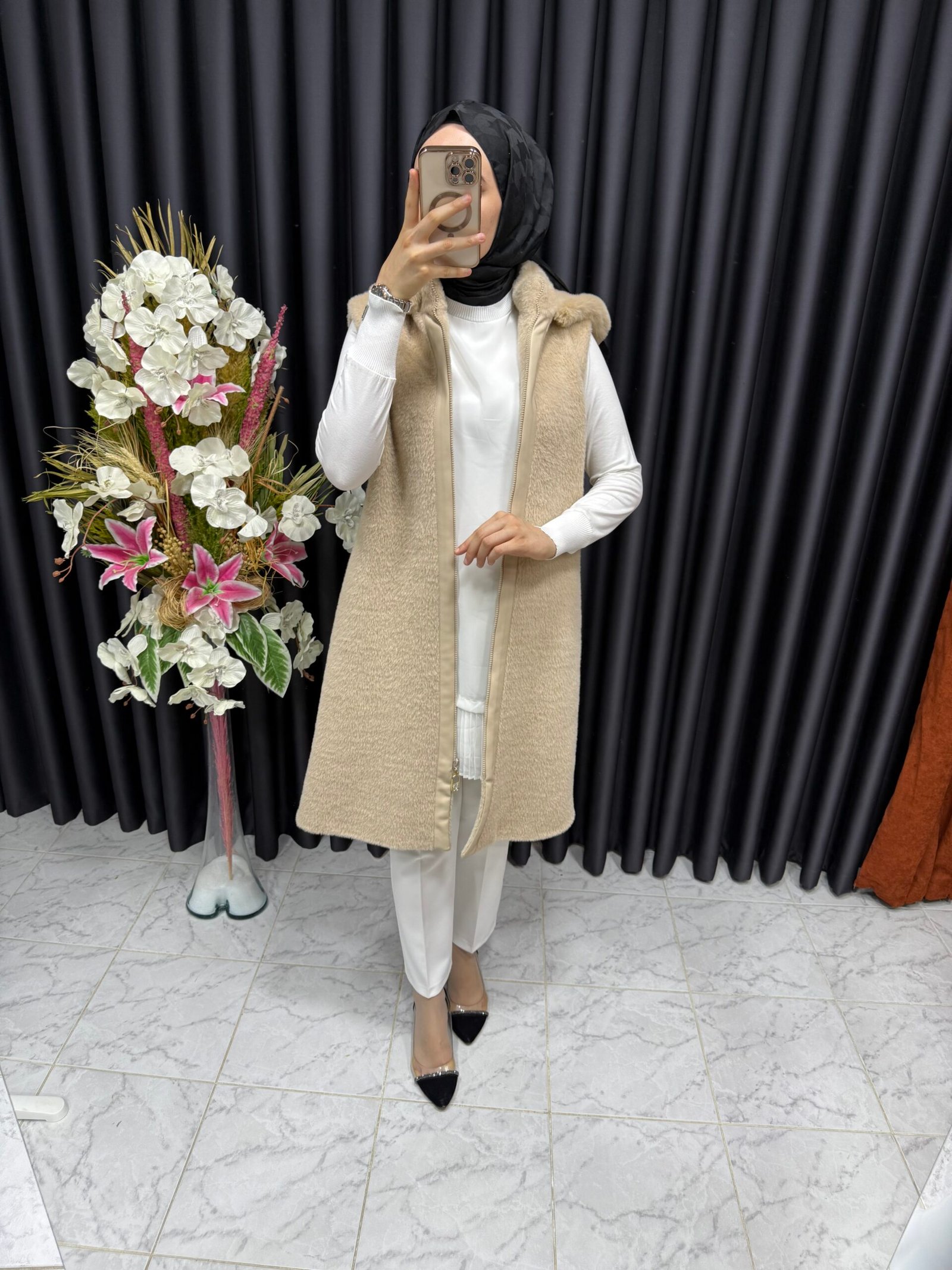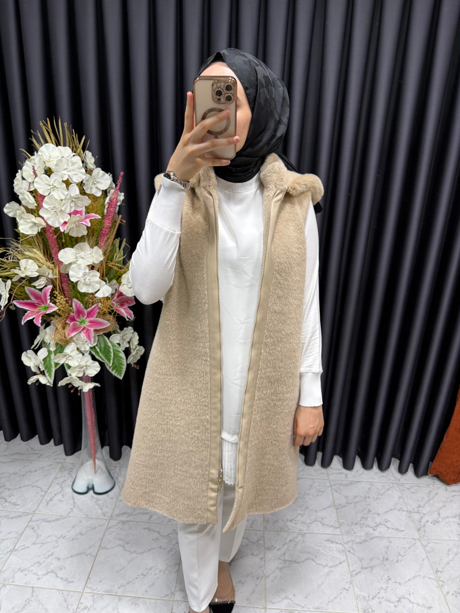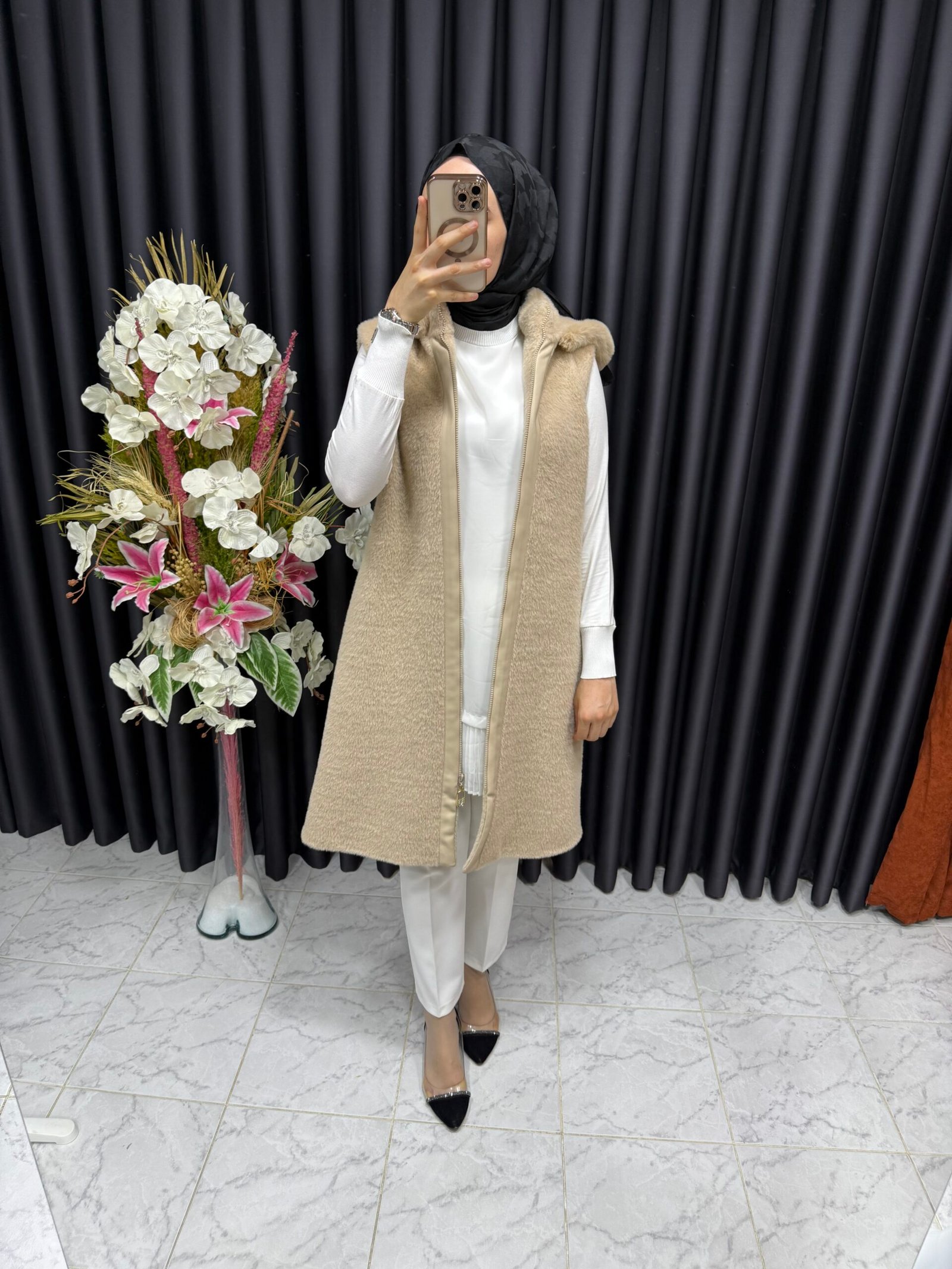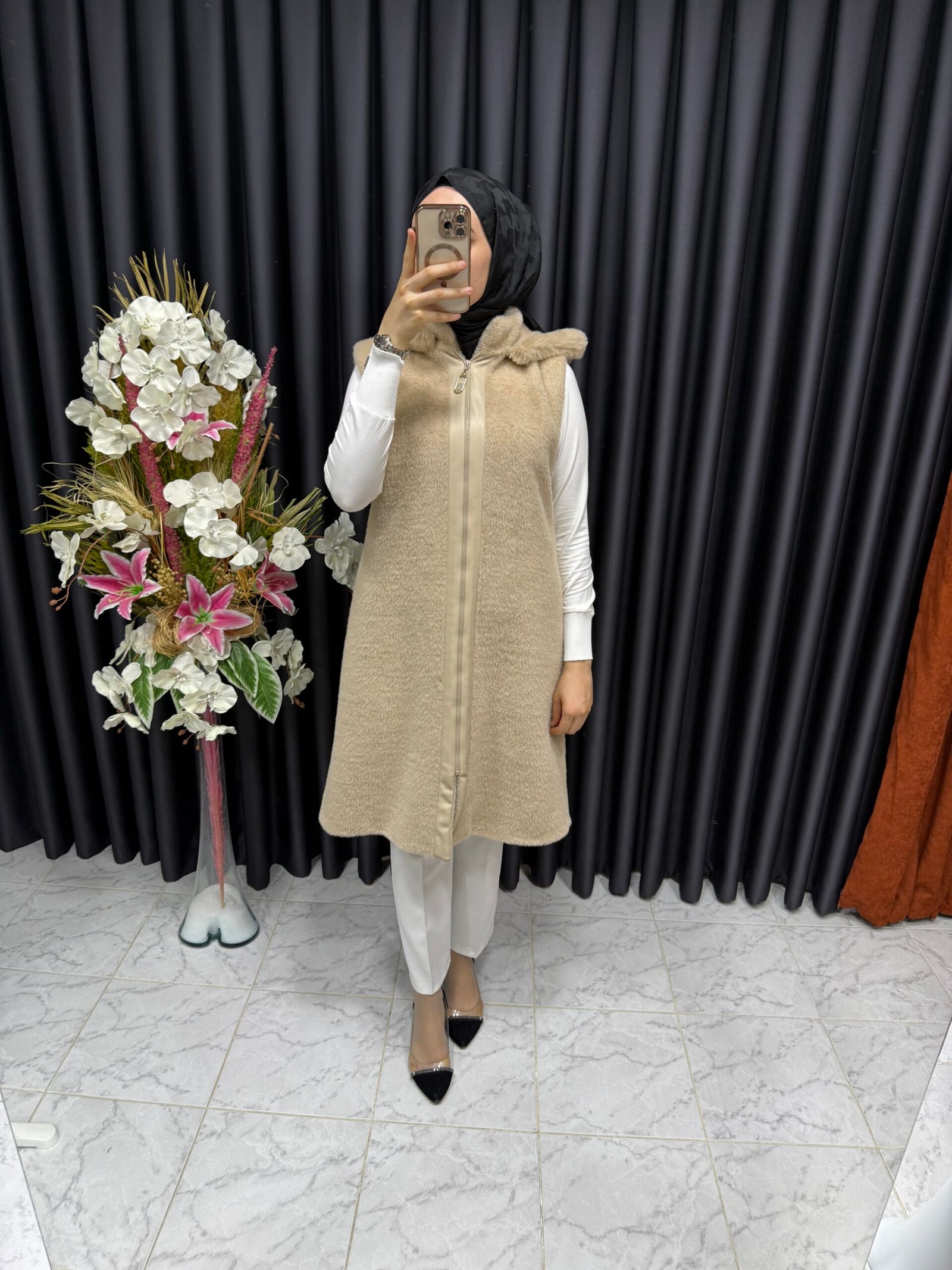 Angora yelek, her kıyafeti zahmetsizce tamamlayan şık, zamansız bir tasarıma sahiptir. İster gündelik bir bluzun üzerine katmanlı ister resmi bir gömlekle eşleştirilmiş olsun, bu çok yönlü aksesuar hafif ve nefes alabilen özelliklerini korurken gardırobunuzu geliştirir. Nötr tonlar ve rafine işçilik onu hem gündüz işleri hem de akşam toplantıları için uygun hale getirir.