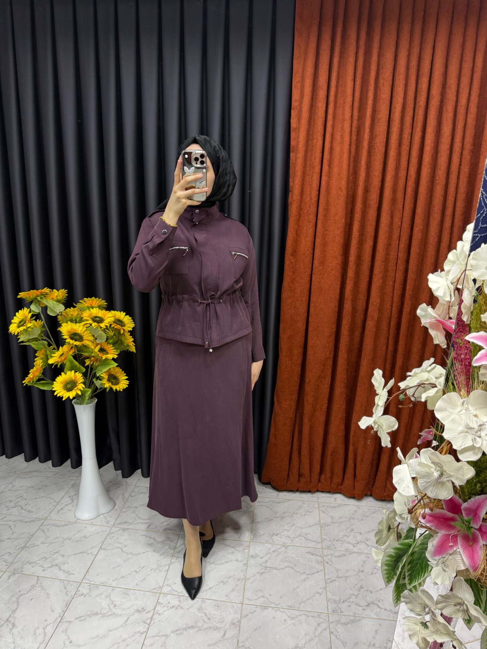 Bu özgün tasarım, farklı kullanımlar için çeşitli seçenekler sunar. Belden büzgülü etekli takım, iş toplantılarından özel davetlere kadar birçok alanda sizi rahat ve şık hissettirecek. Dilerseniz stilettolarla tamamlayarak iş hayatında profesyonel bir dokunuş ekleyebilirsiniz, dilerseniz spor ayakkabılarla günlük rutinde rahatlığı ön plana çıkarabilirsiniz. Seçim sizin!