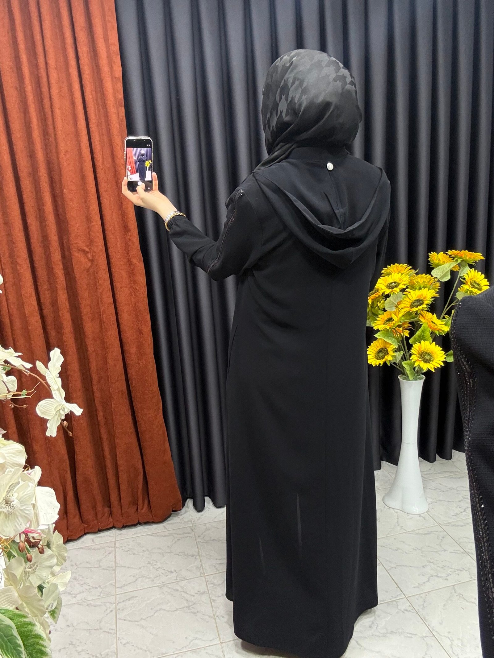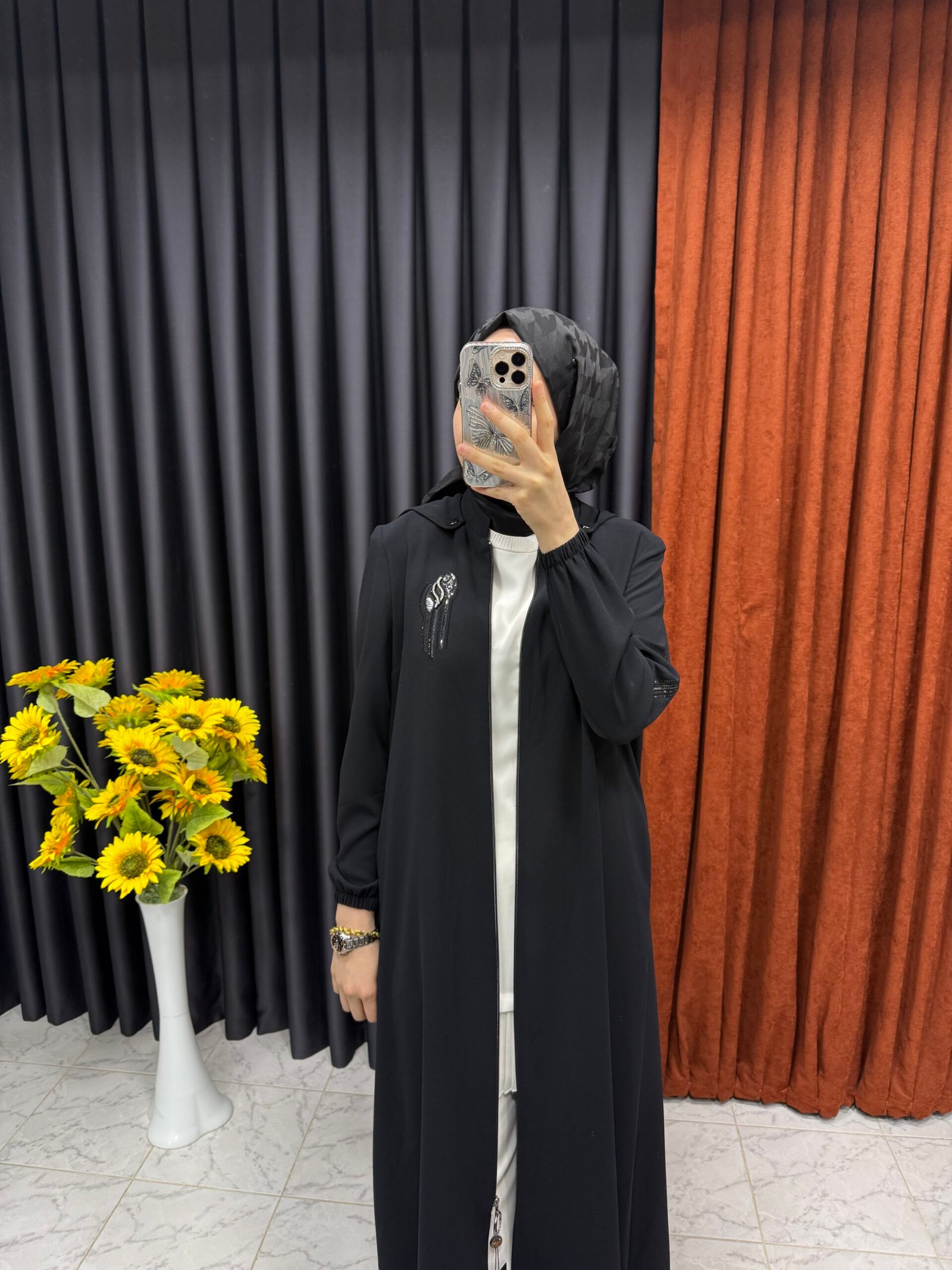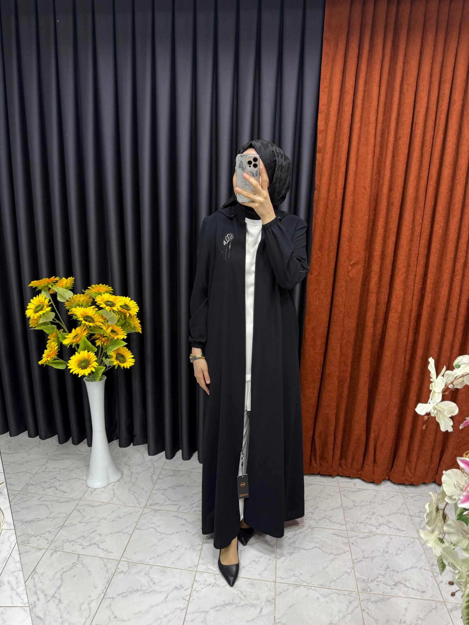 • Damla şekli boncuk detaylı ferace
