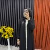 Damla Şekilli Boncuk Detaylı Ferace Siyah