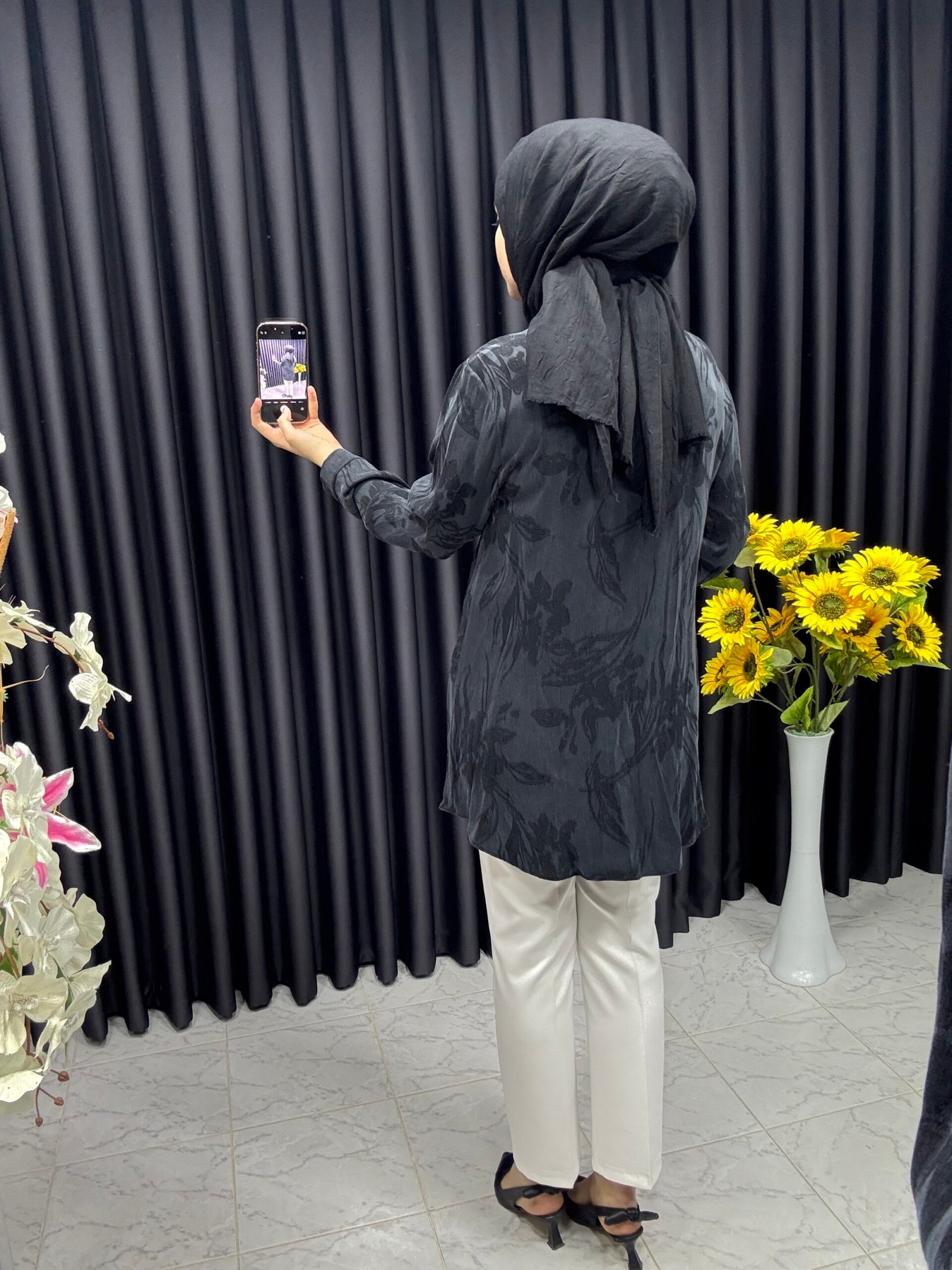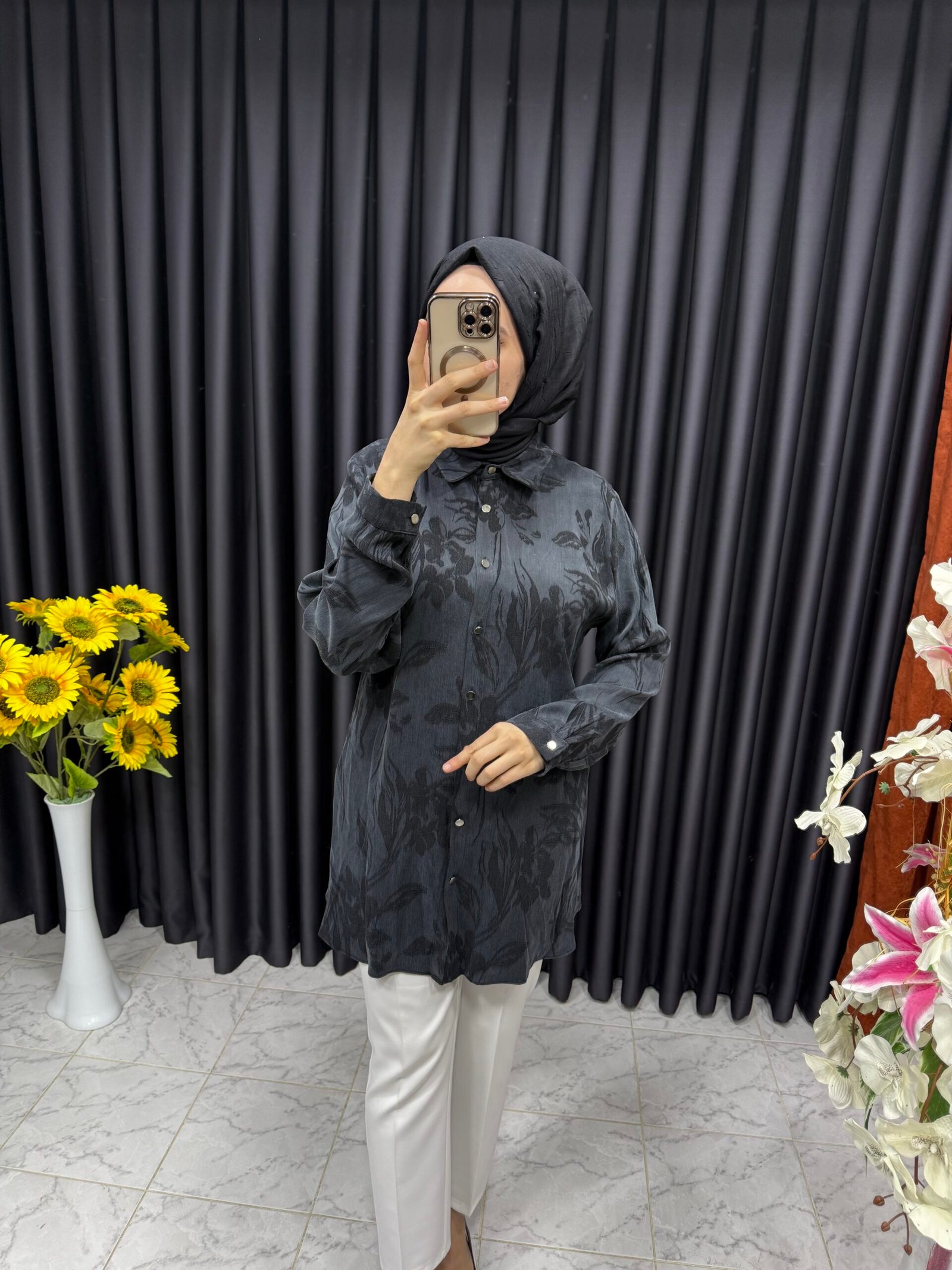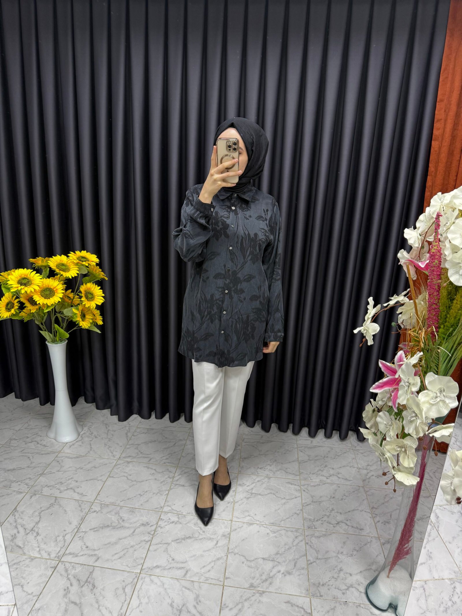 Desenli İpek Kupra Kumaş Gömlek Antrasit