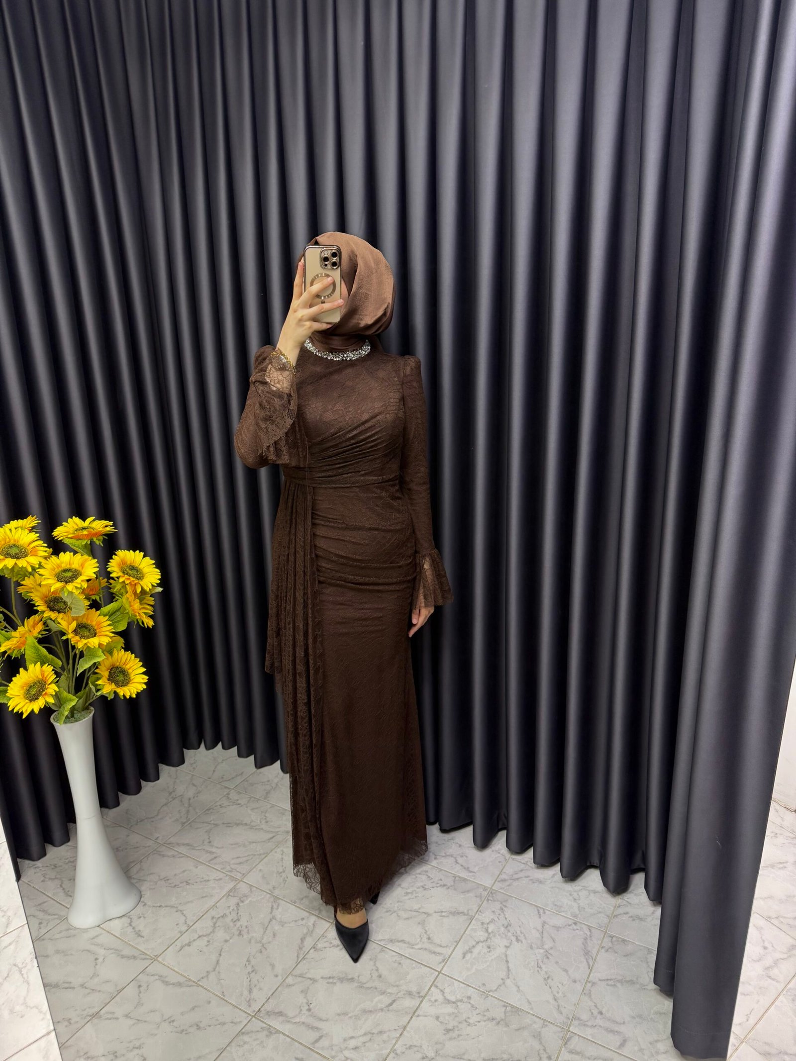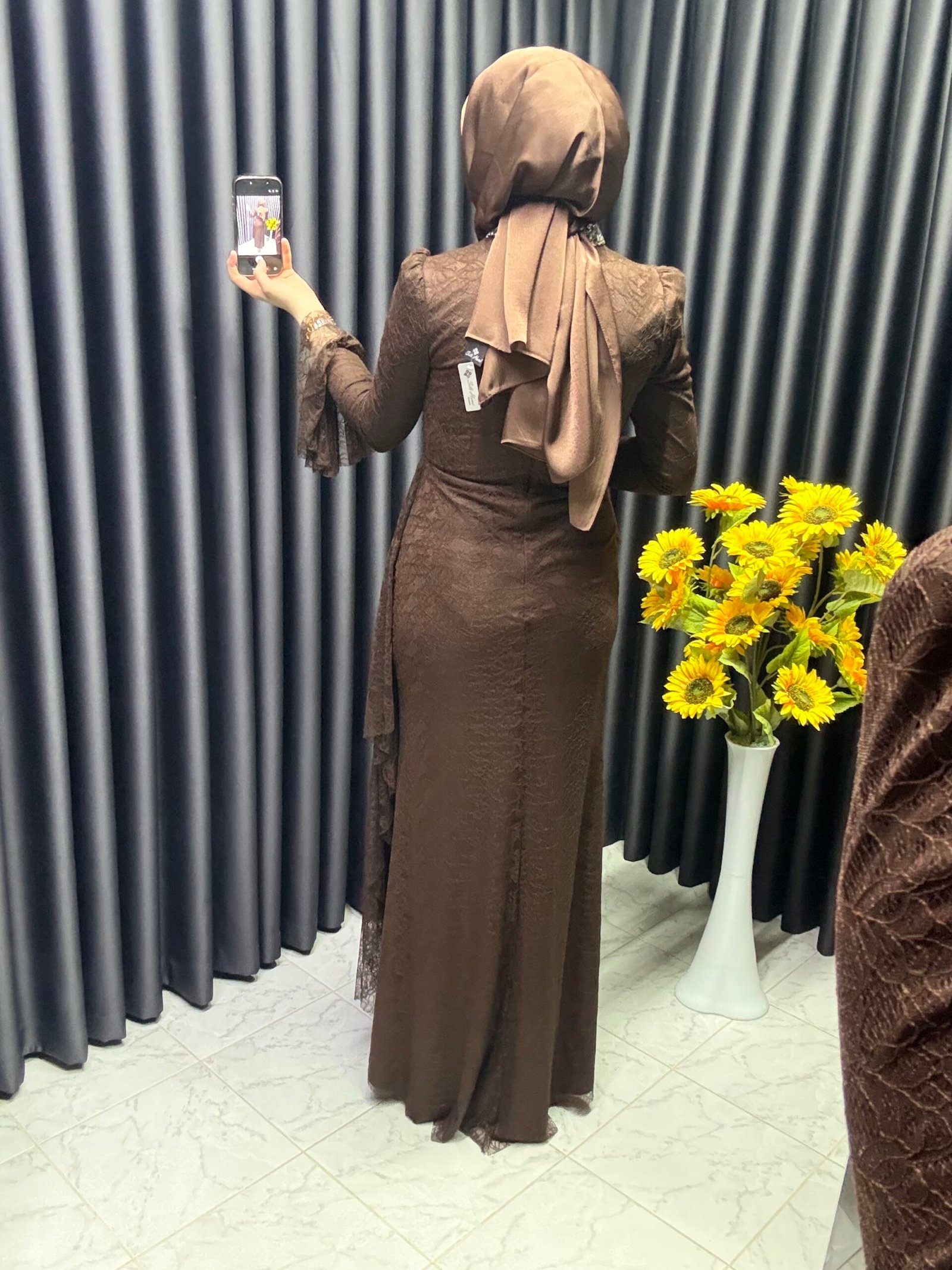 Fransız dantel balık elbisenin detayları dikkatlice tasarlanmıştır: zarif işlemeler, göz alıcı dikişlerle birleşerek benzersiz bir görsel şölen yaratır. Balık kesiminin ardından uzanan hafif kuyruk, özel günlerde zarif bir dokunuş katar. Aynı zamanda farklı beden seçenekleri ile geniş bir kullanım alanı sunarken kişisel stillere uyum sağlar.