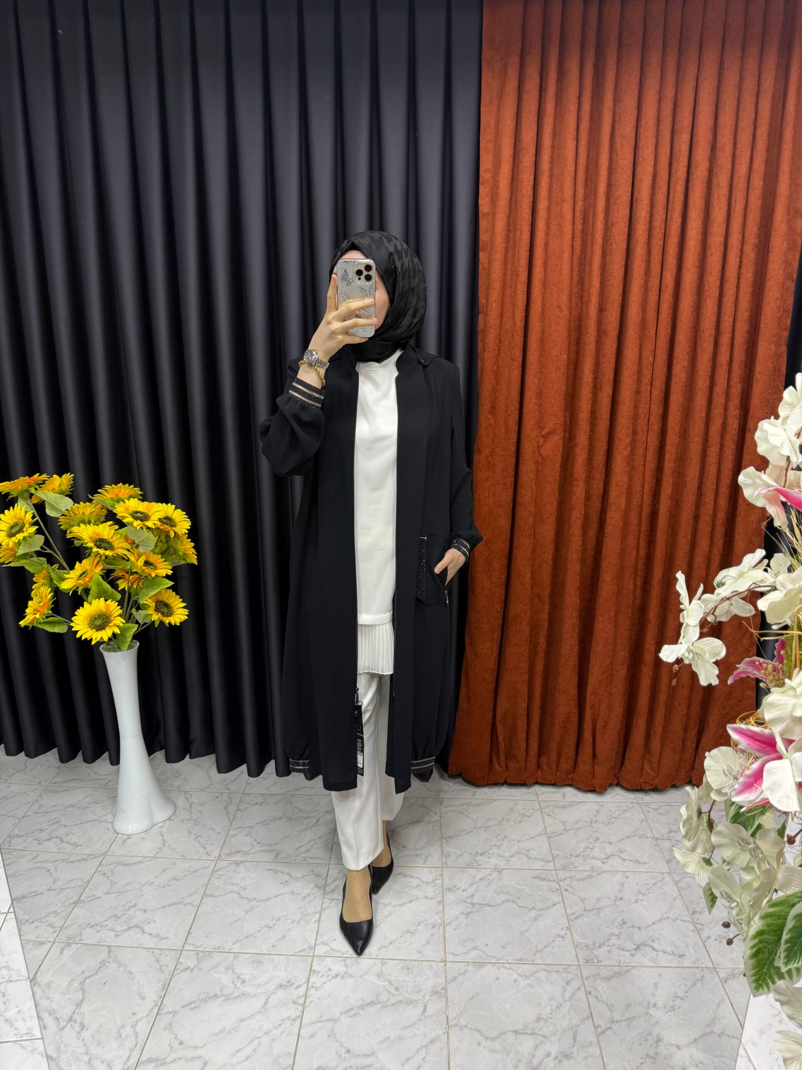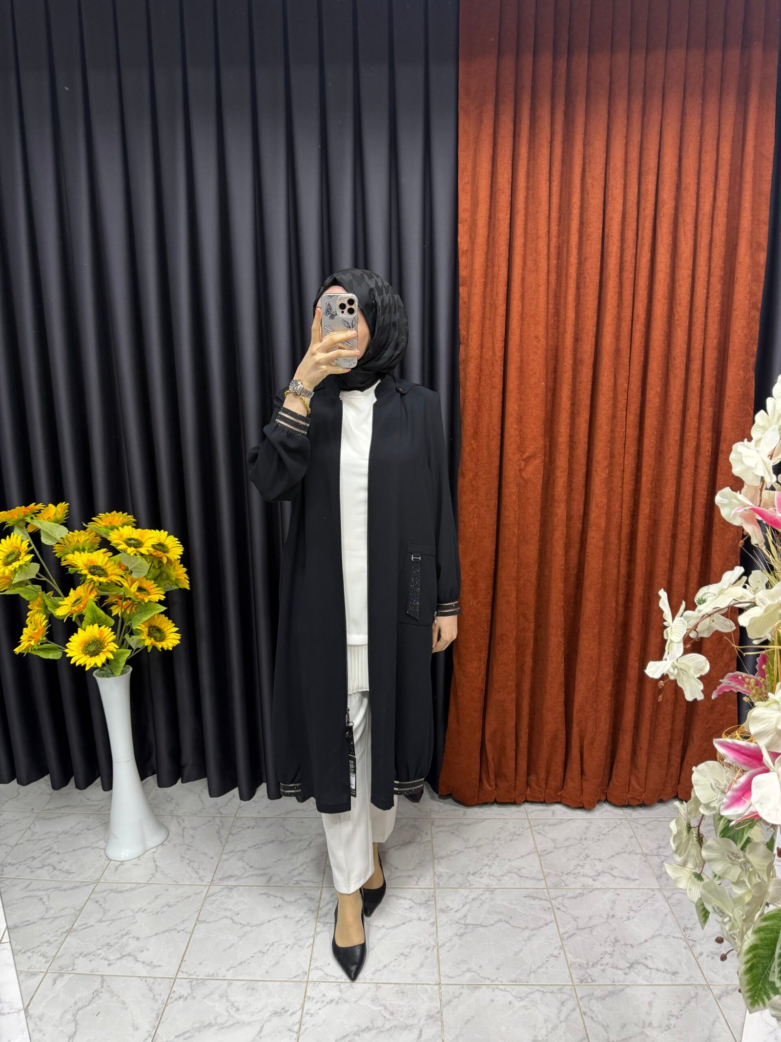 Bu sade giyçık, kollarında kullanılan organze tül detayları ile kusursuz bir görünüm sağlar. Hafif yapısı sayesinde sizi özgürce hareket ettirirken, estetik tasarımı ile dikkatleri üzerinize çekmenize yardımcı olur. Üstelik bu ince detaylar, ürünün genel tasarımına sofistike bir hava katar, her ortamda tercih edilebilecek bir şıklık sunar.