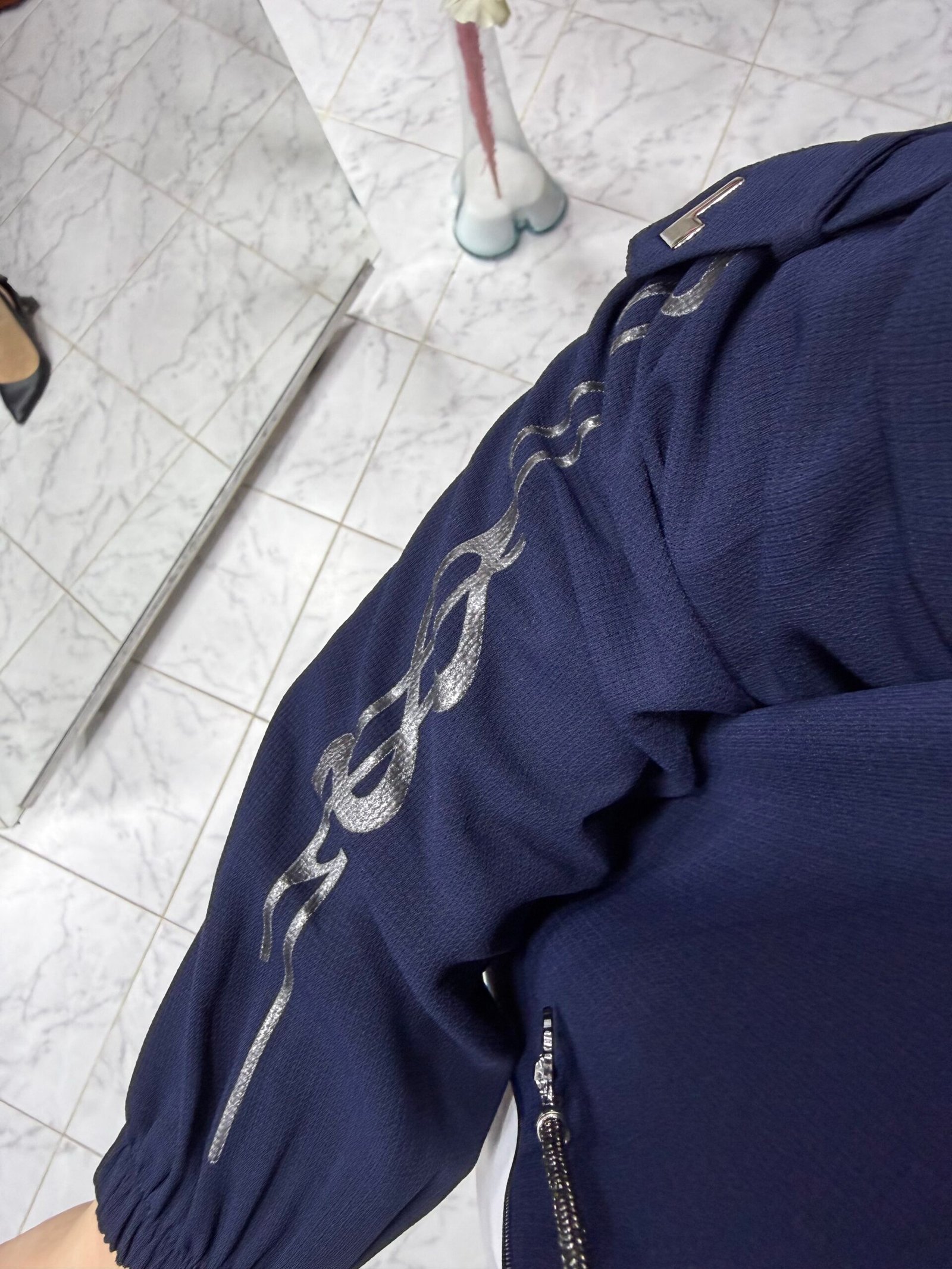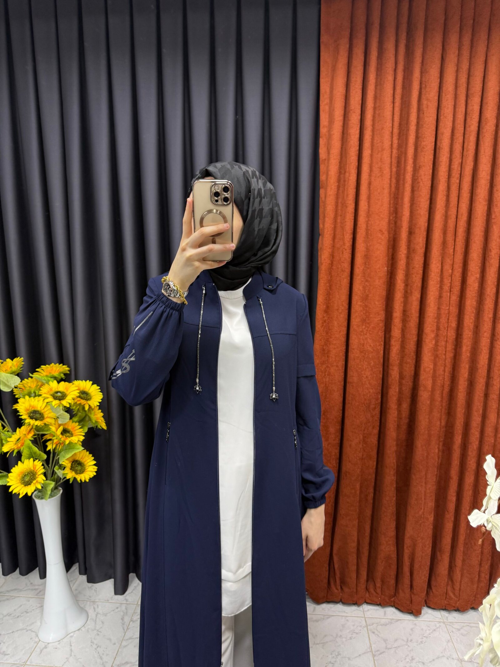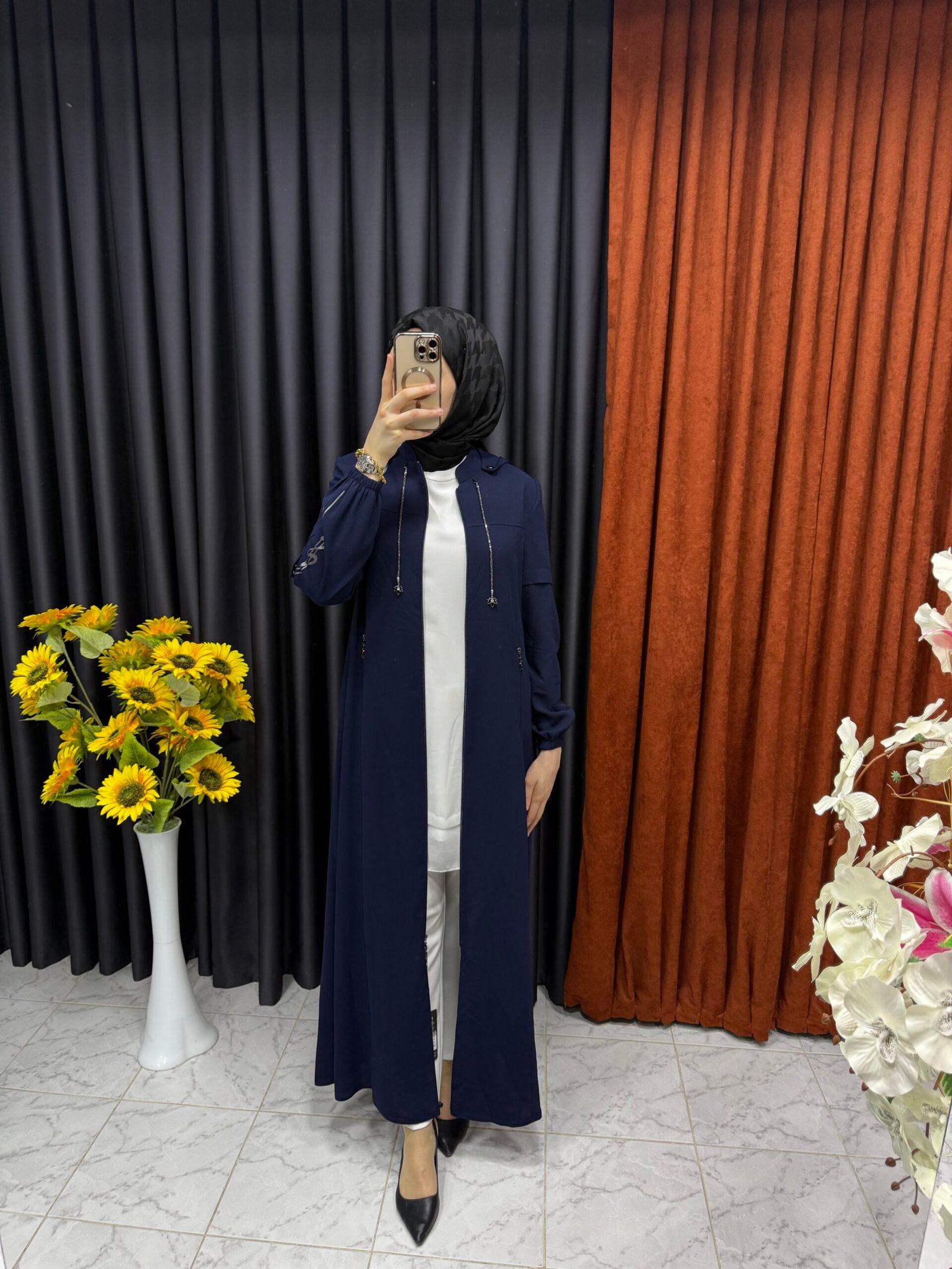 Kolu Şerit Işıltılı Ferace Lacivert