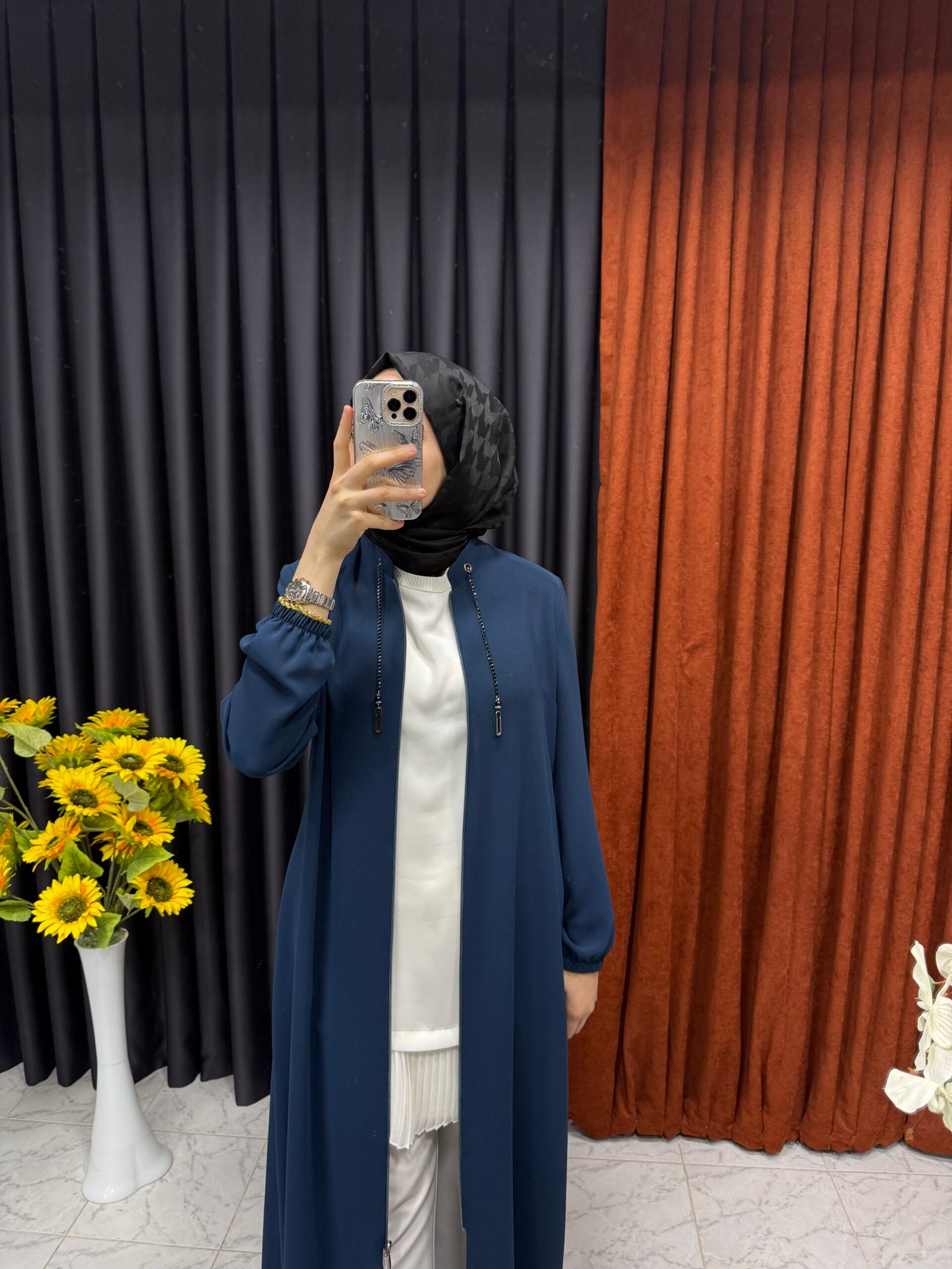 Önü boncuk zincirli sade ferace her yaştan ve her tarzdan kadına hitap eder. İster gündüz iş yerinde, ister akşam özel bir davette rahatlıkla bu şık tasarımı tercih edebilirsiniz. Klasik siyah seçeneği zamansız bir görünüm sunarken, farklı renk alternatifleriyle kendi kişisel tarzınızı yansıtabilirsiniz. Aksesuarlarla kombinleyerek, bu sade feraceyi çok çeşitli görünümlerle tamamlamanız mümkün.