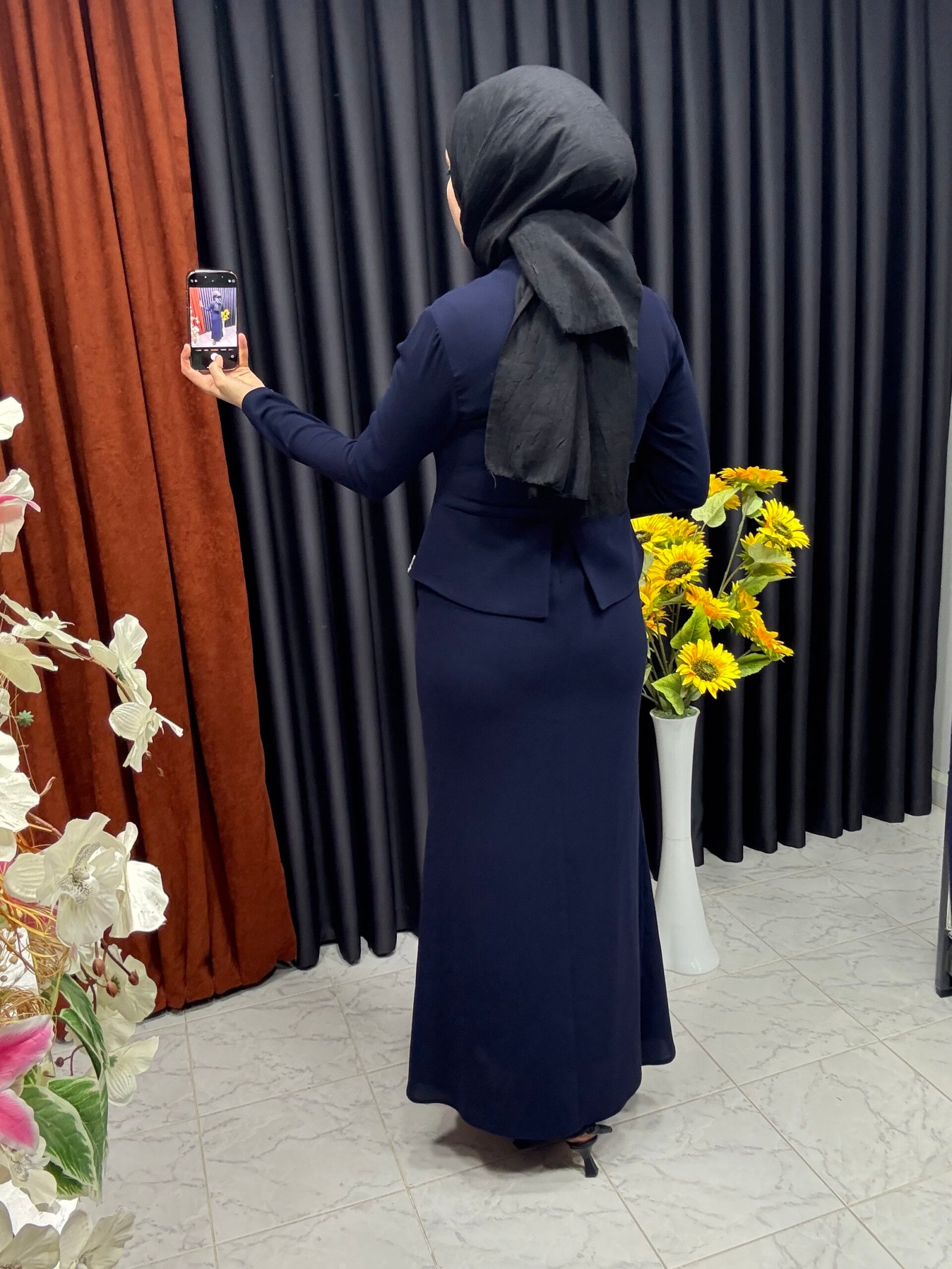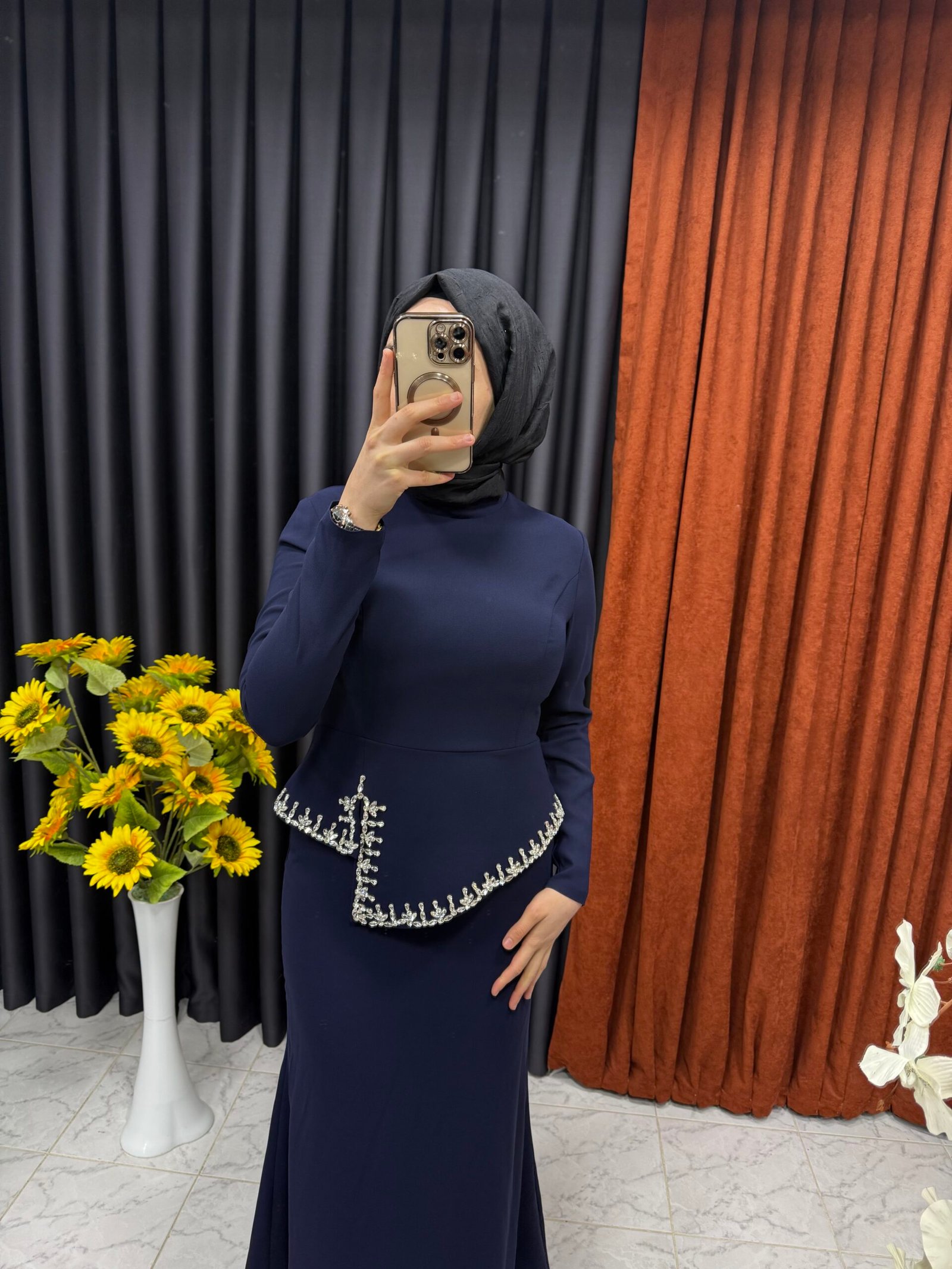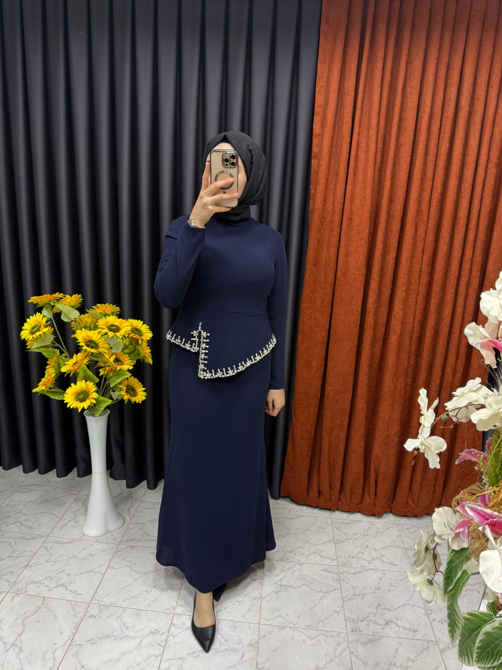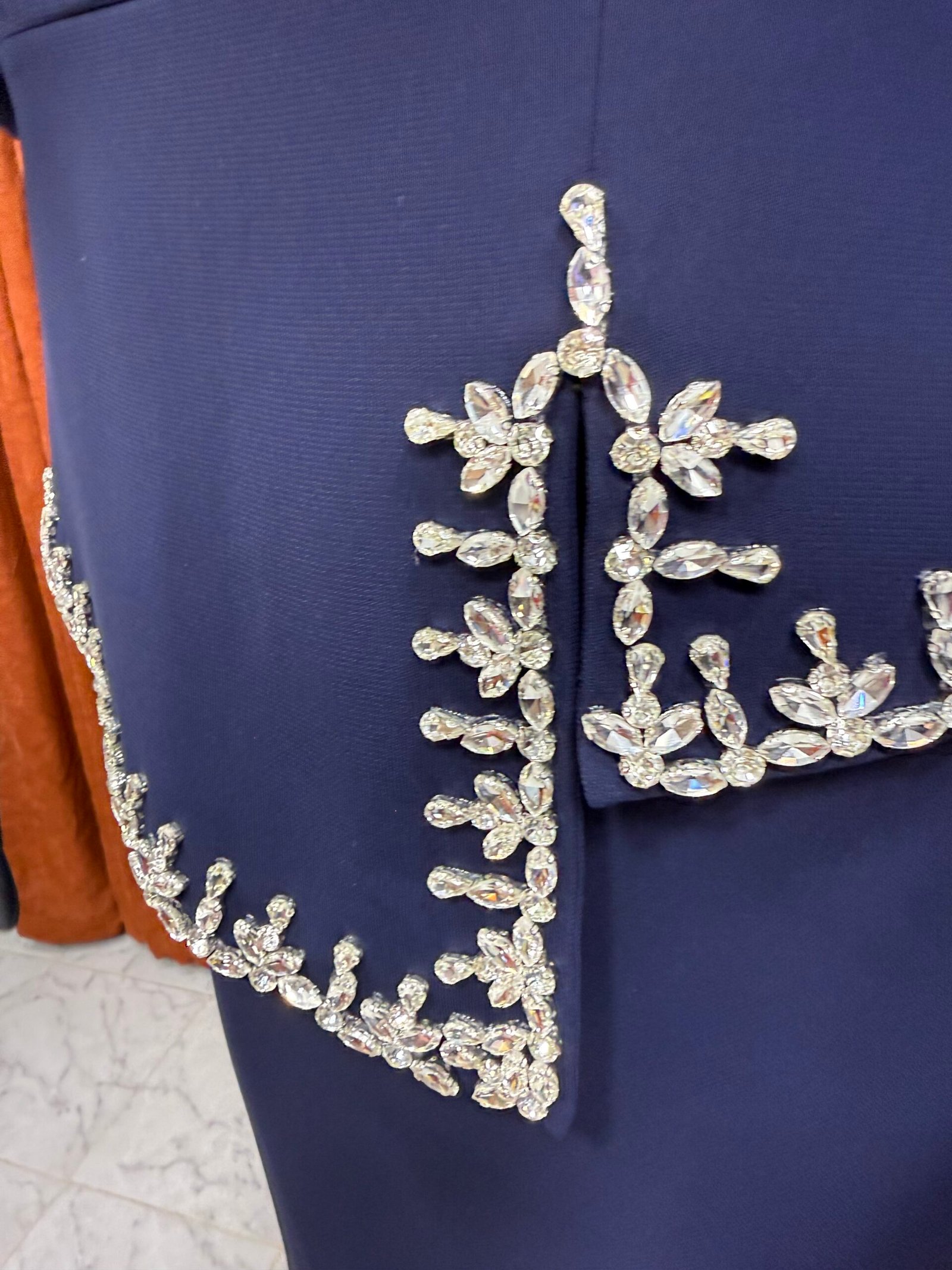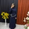 Önü Taş İşlemeli Balık Elbise Lacivert