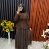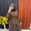 Hem konforlu hem de şık olmayı bir arada sunan bu takım ile her ortamda kendinizi rahat hissedeceksiniz. Eteğin yumuşak dokusu ve üst kısımda kullanılan kaliteli fırfır detaylar, hareket ederken özgürlük sağlar. Üst kısmın modern kesimi ve eteğin zarif yapısı, vücut hatlarını dengeleyerek feminen bir görünüm verir.