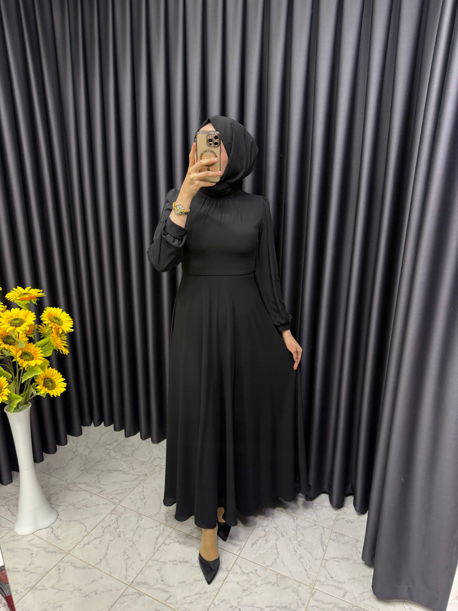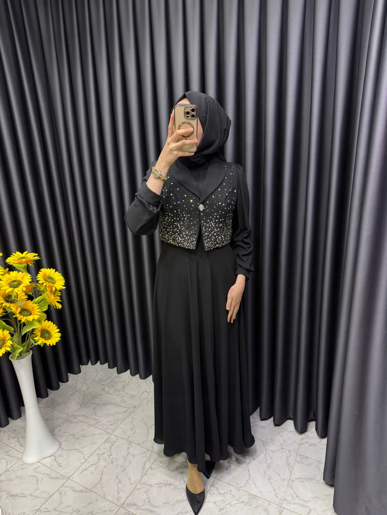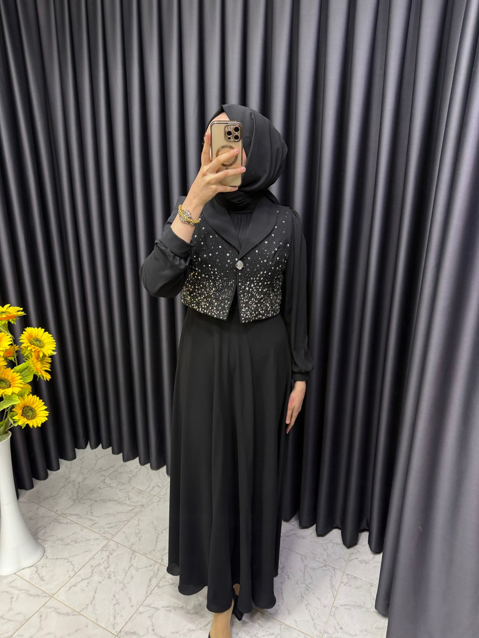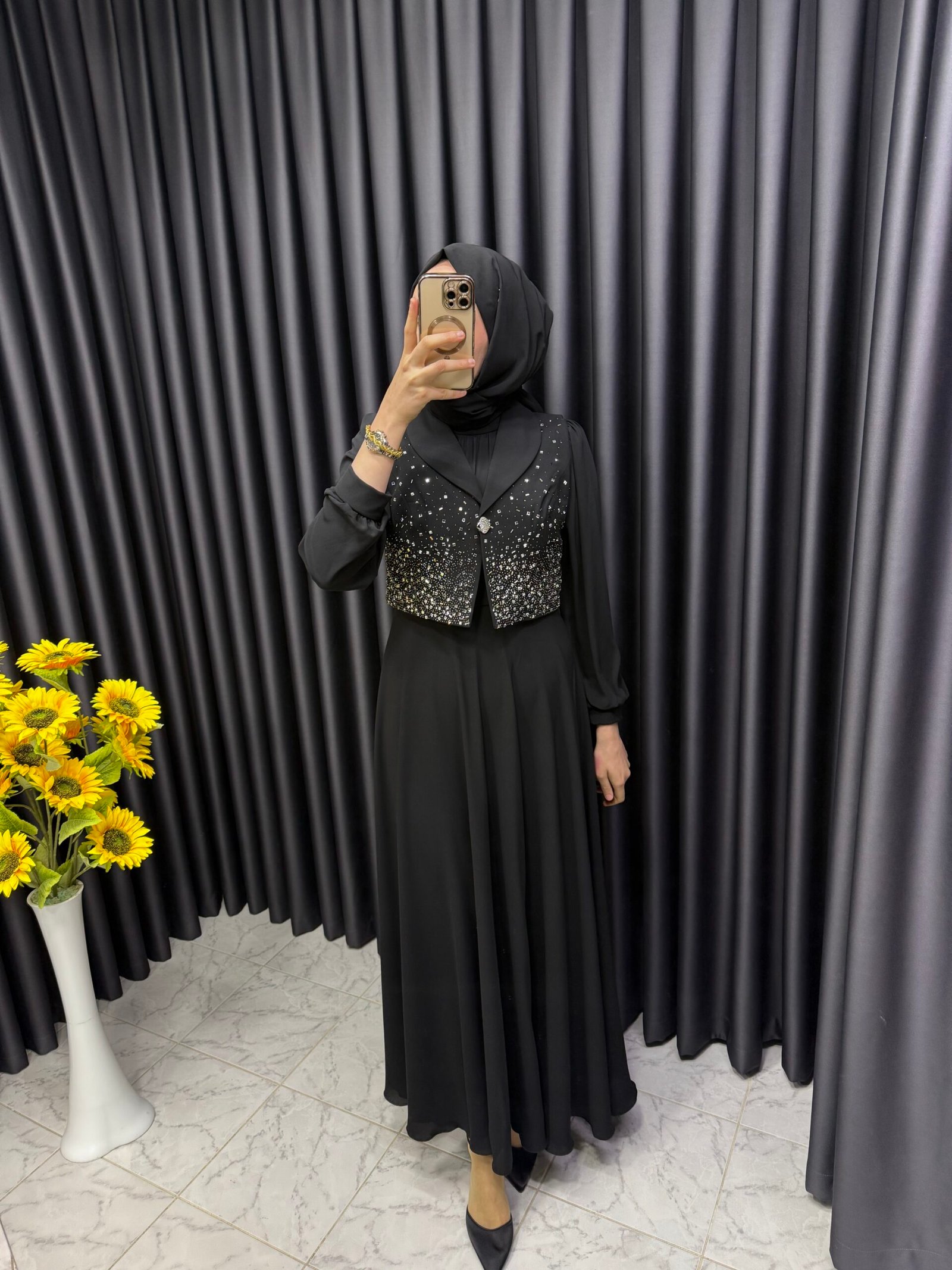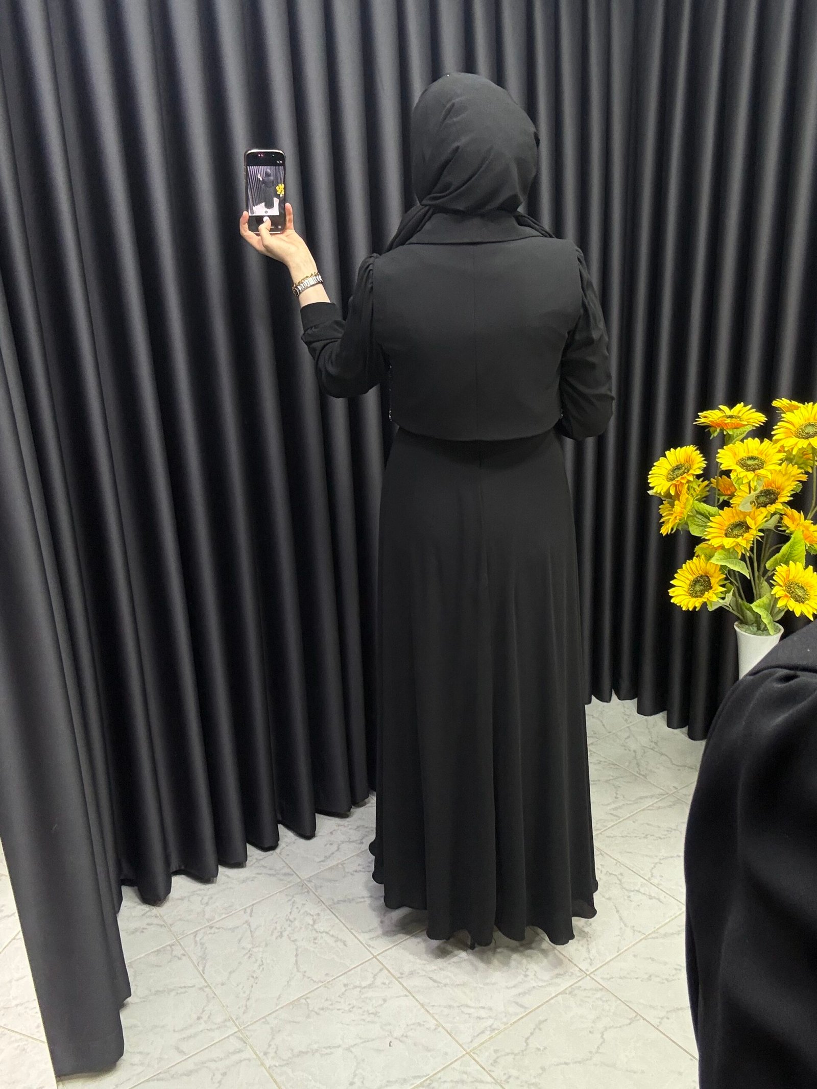 Şifon Mevlana Model Cepkenli Abiye Siyah