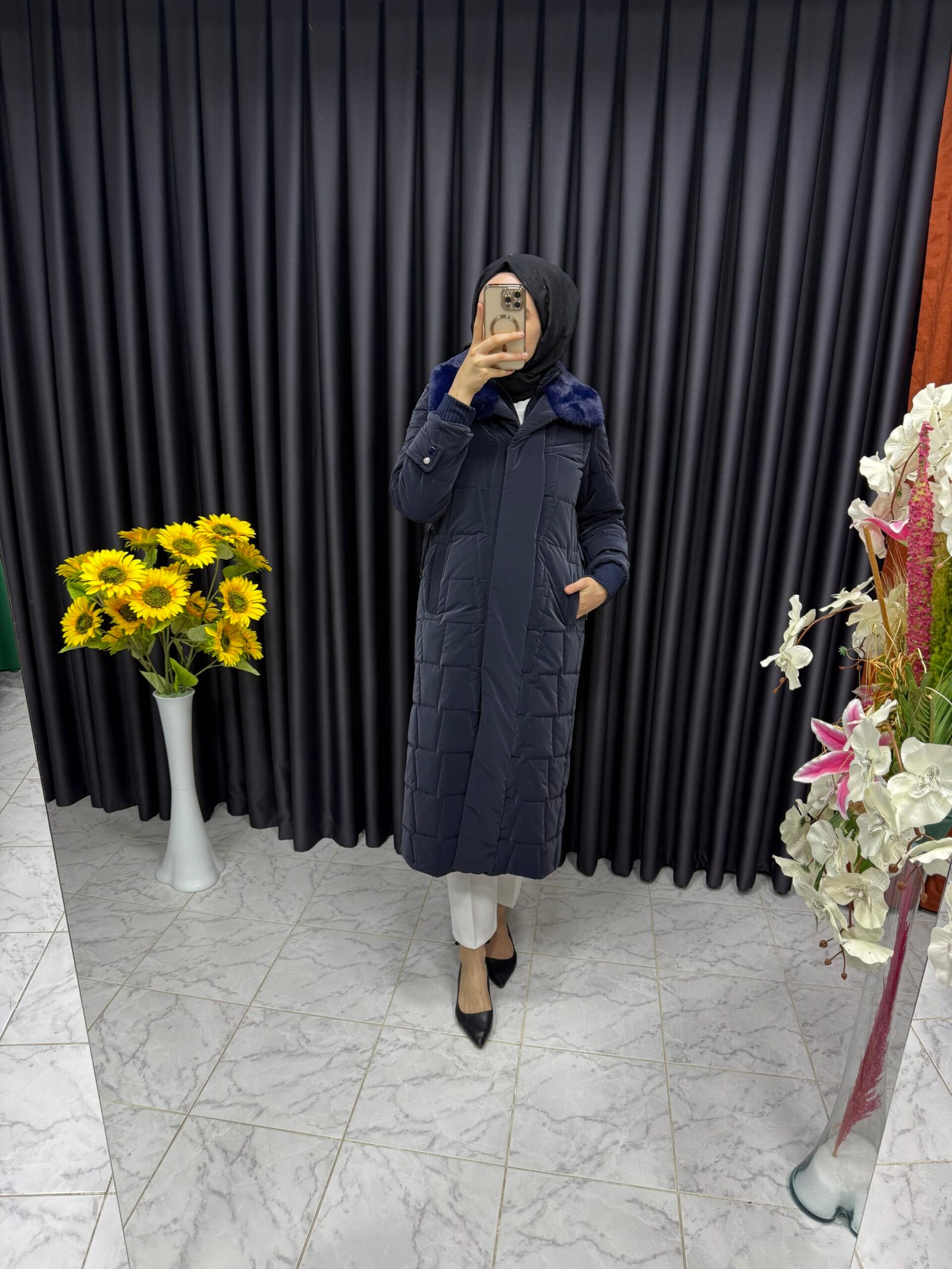 • Yelek detaylı şişme kaban