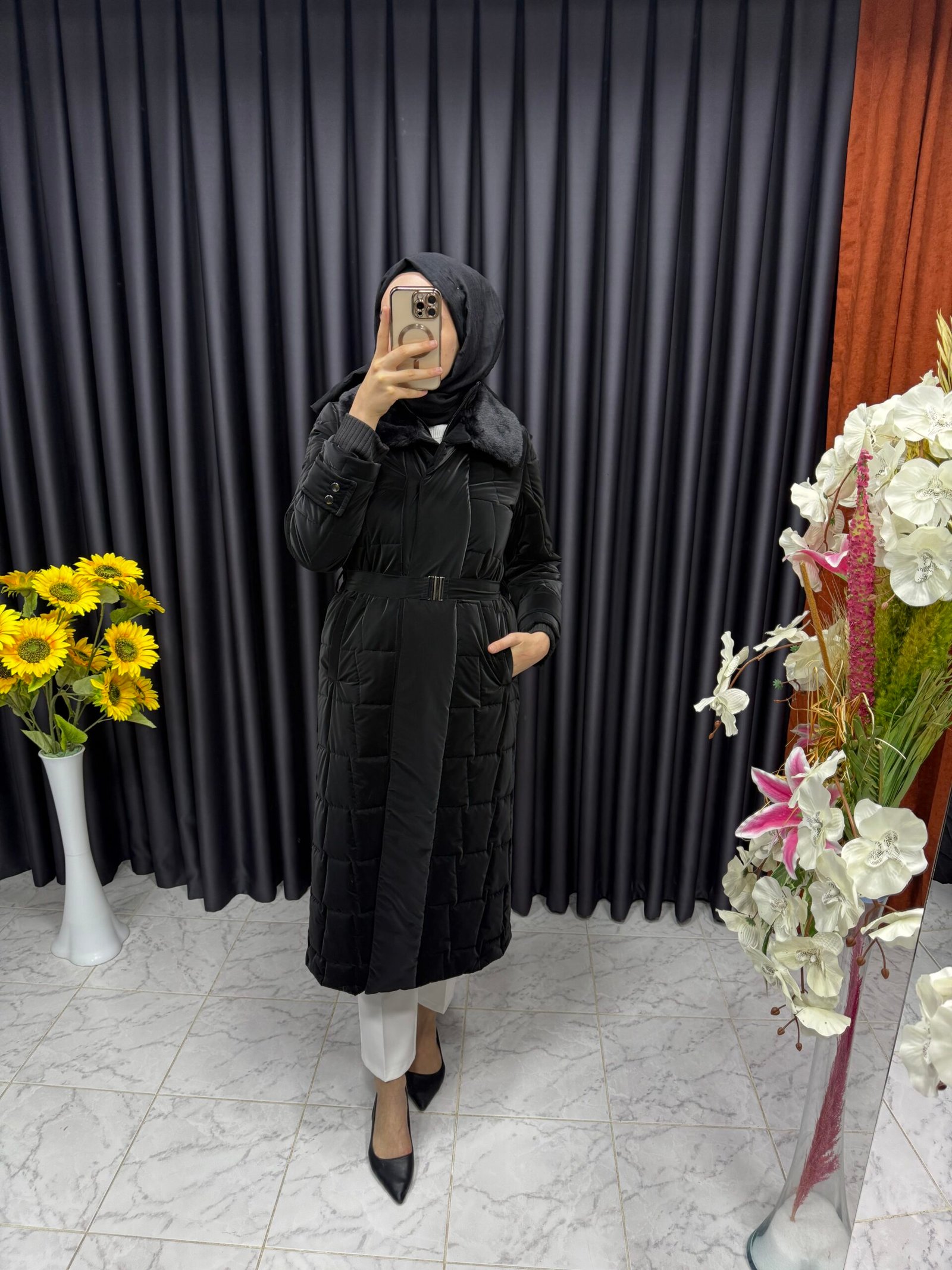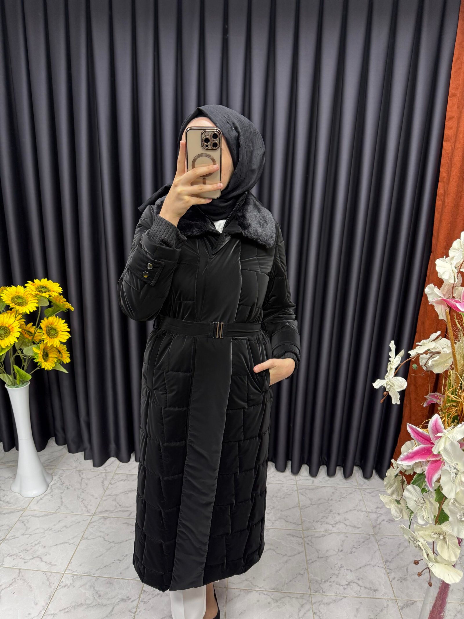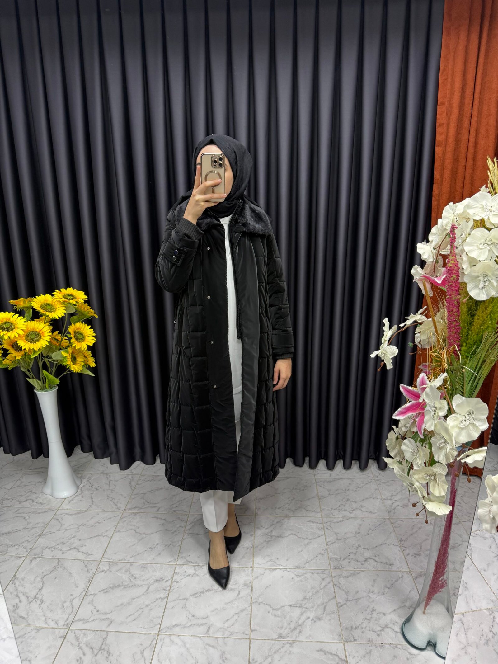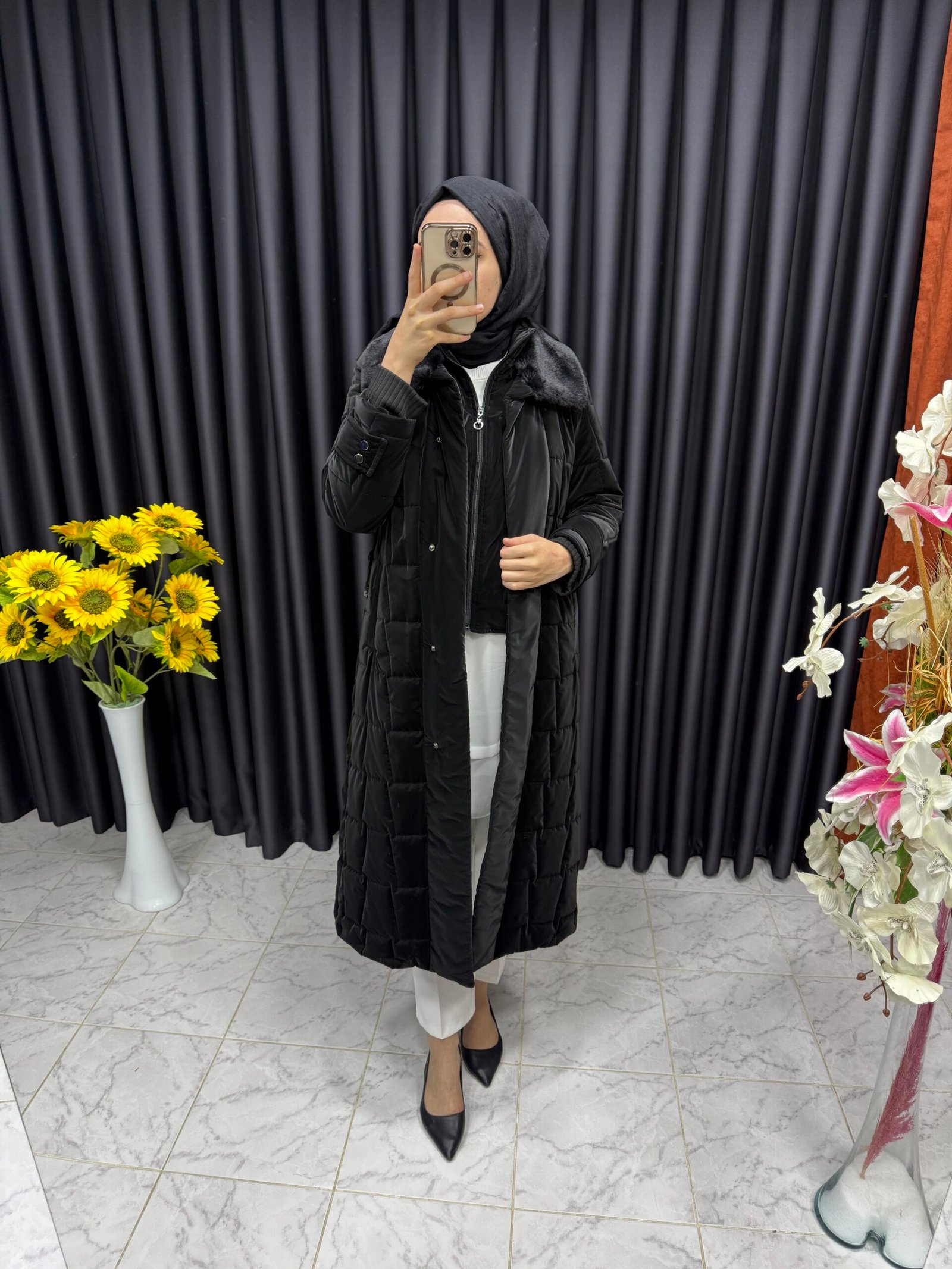 Yelek Detaylı Şişme Kaban Siyah