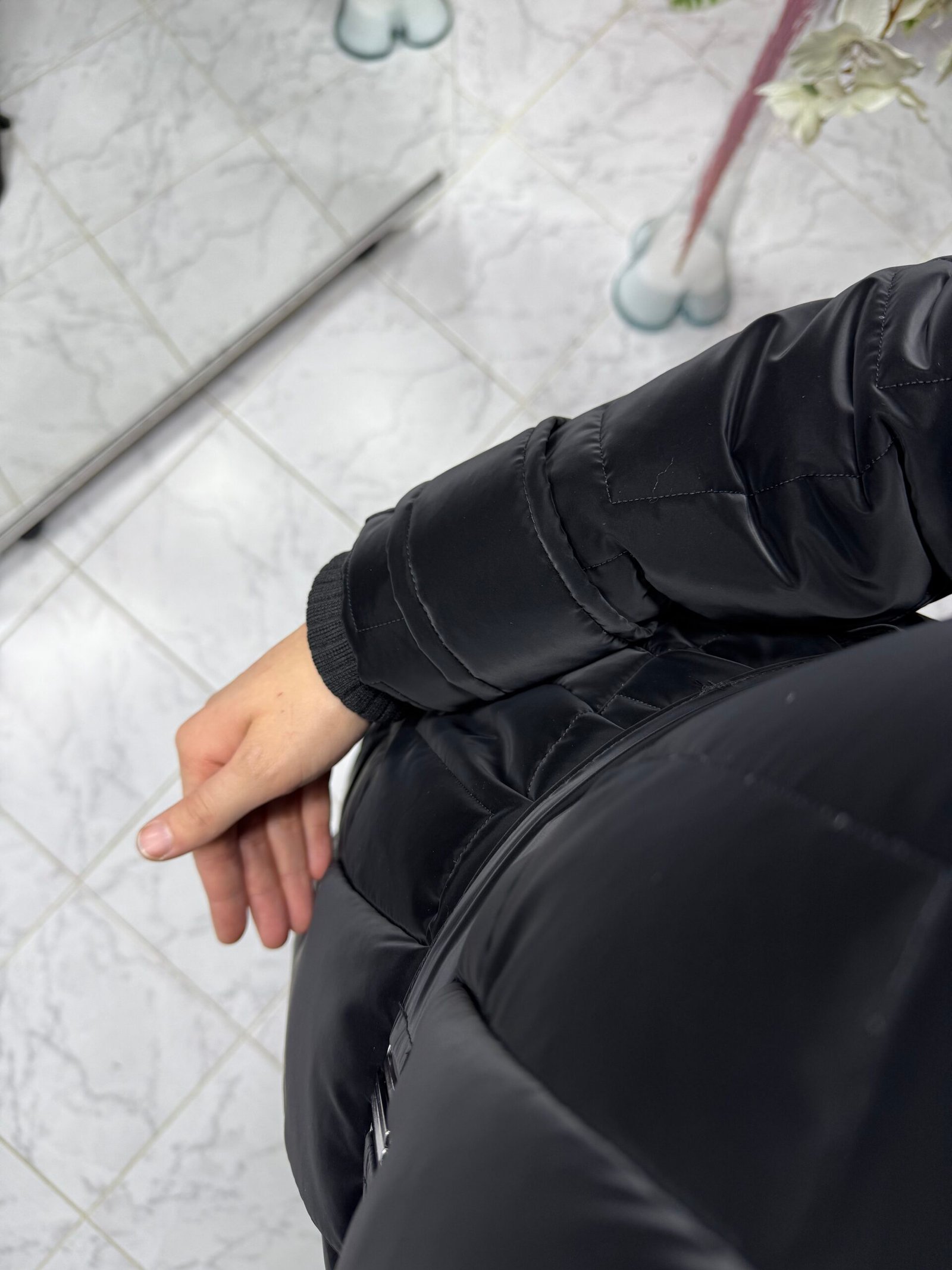 • Yelek detaylı şişme kaban